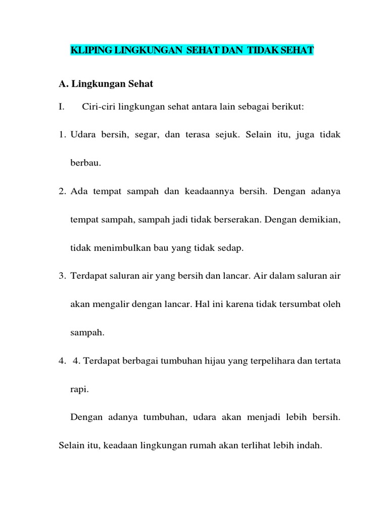 Kliping Lingkungan Sehat Dan Tidak Sehat