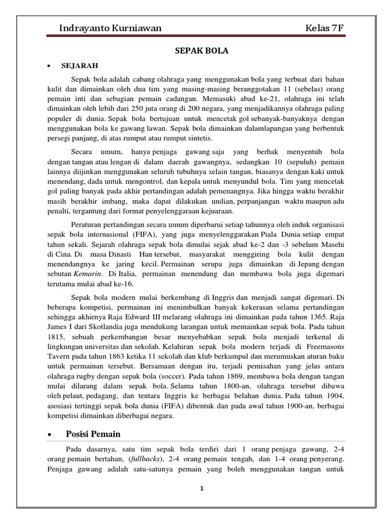 DOC) MAKALAH TENTANG PERMAINAN SEPAK BOLA | Aaf Andesum - Academia.edu