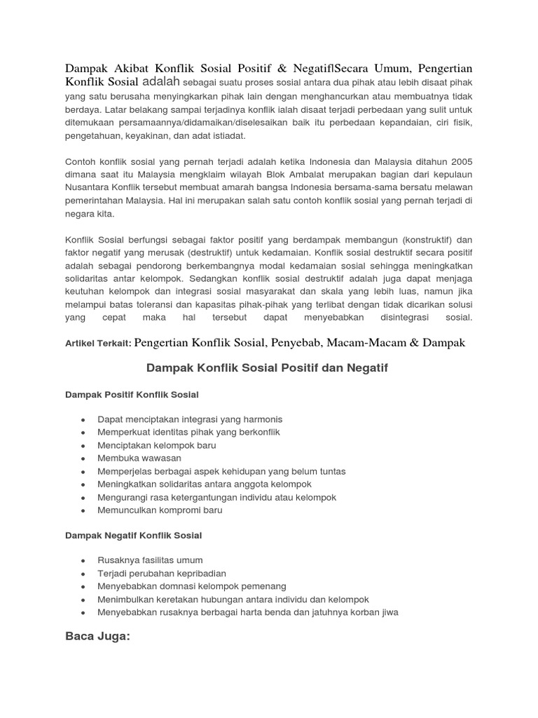 Dampak positif dan negatif konflik sosial - ppt download
