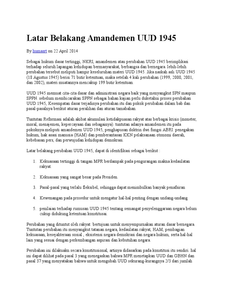 DOC) Latar Belakang Perubahan UUD 1945 | Abizar Giffari - Academia.edu