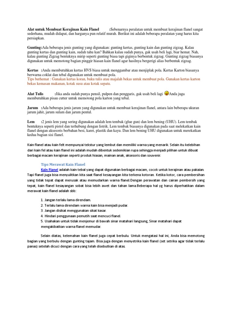 Alat Untuk Membuat Kerajinan Kain Flanel