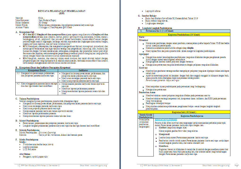 RPP 1 Lembar Prakarya & Wirausaha (Seni Rupa) Kelas 11 SMA/MA Semester 2 - antapedia.com