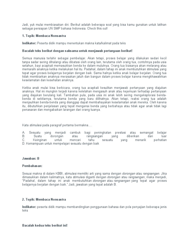 PDF) PAKET 1 LATIHAN UN SMP 2017 BAHASA INDONESIA | Ermawati Sudarman - Academia.edu