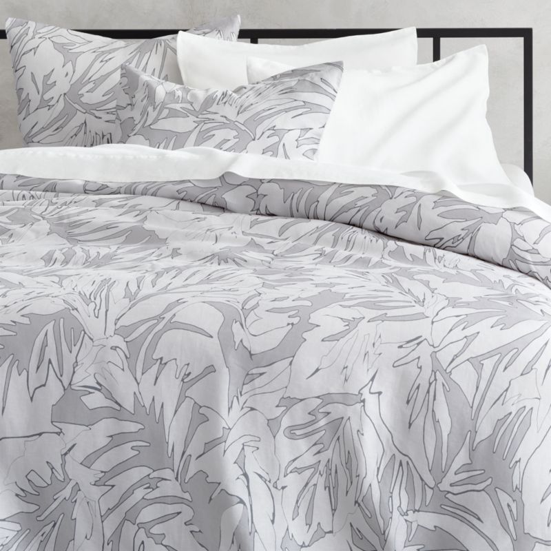Palm Grey Linen Duvet Cover | CB2