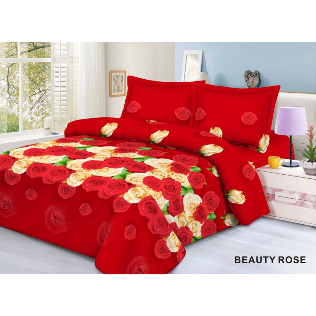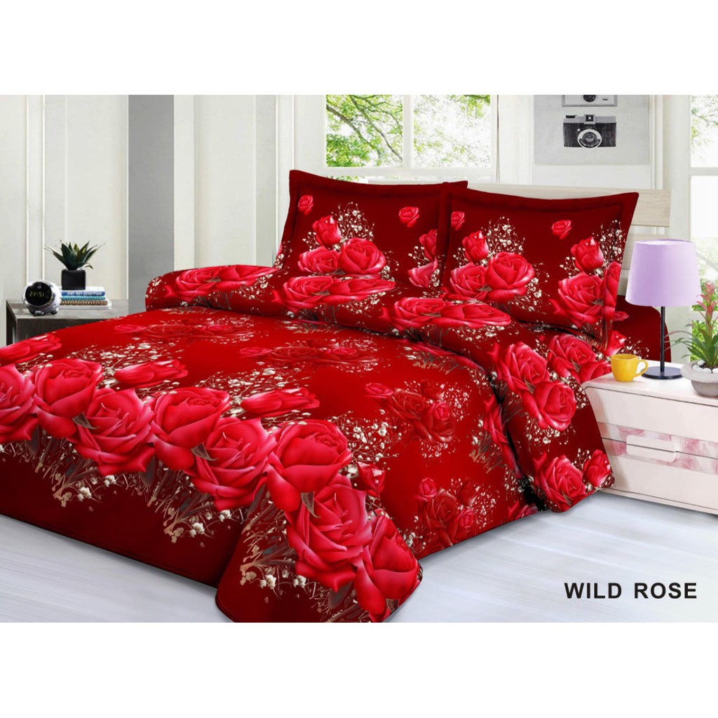 3D Wild Rose Motif Bed Sheet Set 180X200X20 - Extravaganza Wild Rose Motif Bed Sheet | Shopee Singapore