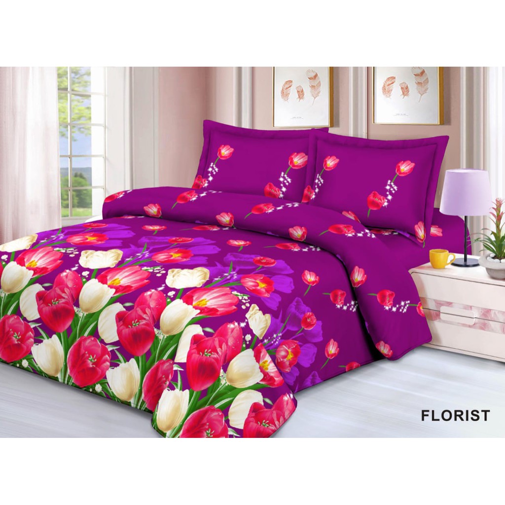 Purple Florist 3D Motif Bed Sheet Set size 180X200 - Bed Sheet 6 Feet Purple Florals Motif | Shopee Singapore