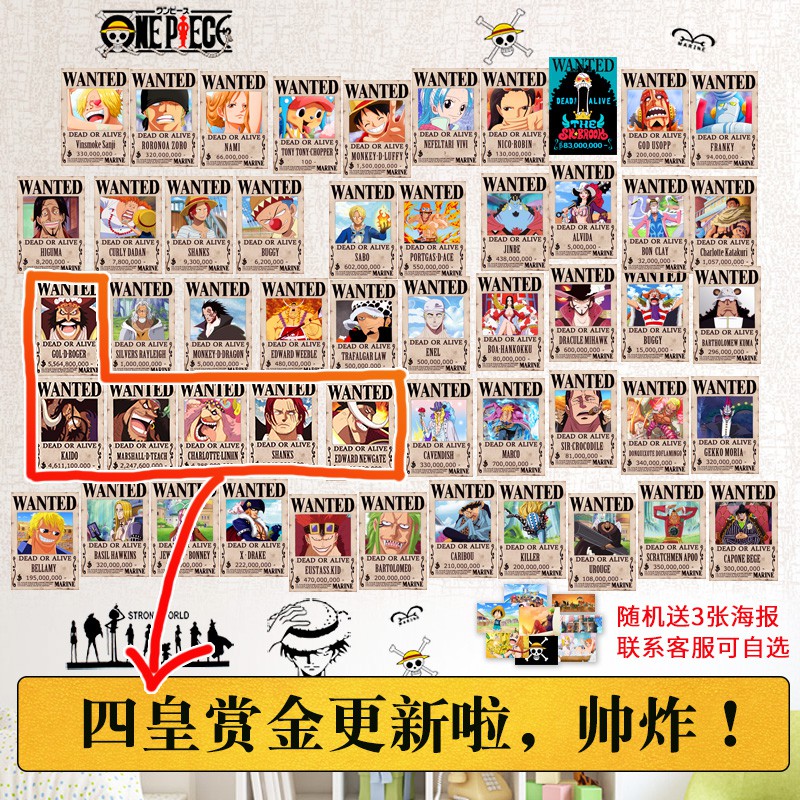 One Piece Wanted Poster Straw Hat Group Reward Order Wall Stickers …