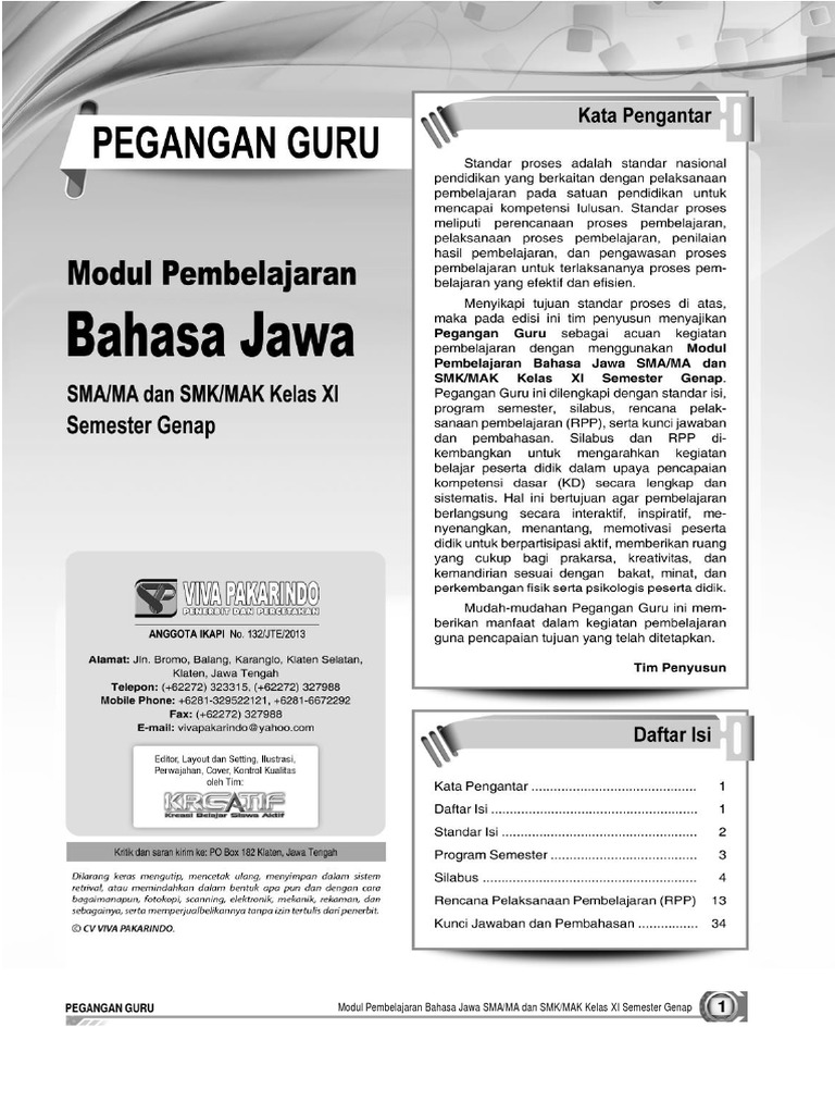 viewMata Pelajaran: Bahasa Jawa. Kelas/semester : XI / 1. Materi …