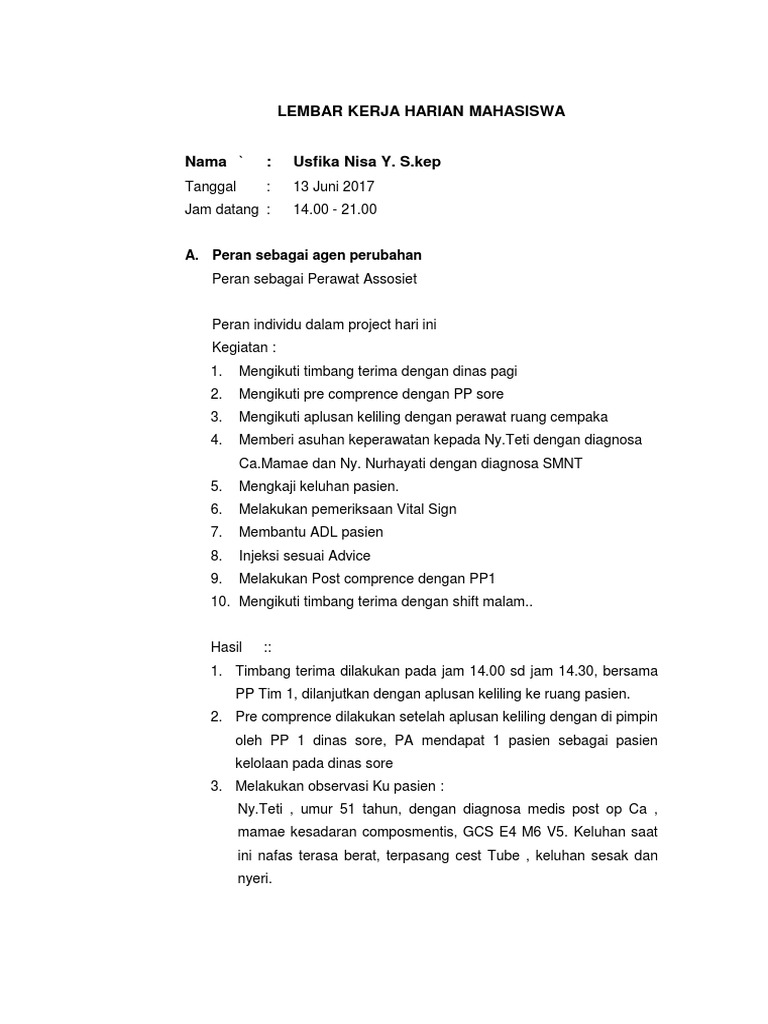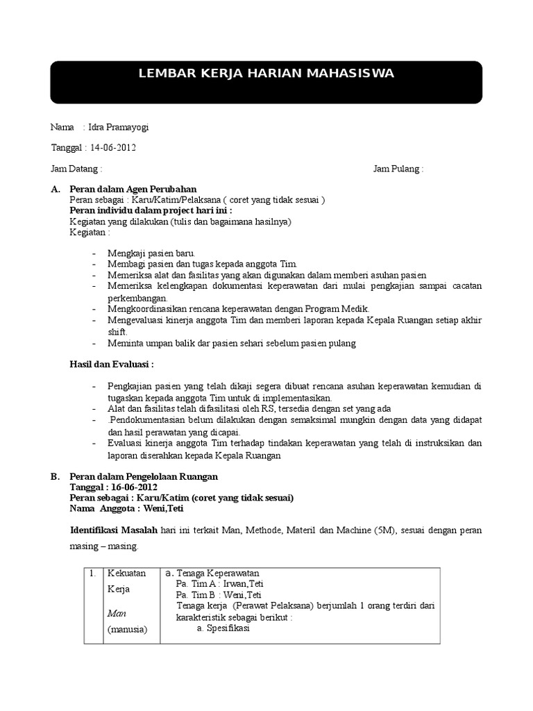 Lembar Kerja Harian Mahasiswa: A. Peran sebagai agen perubahan