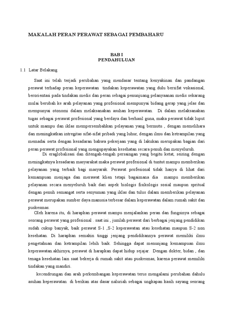 Makalah Peran Perawat Sebagai Pembaharu