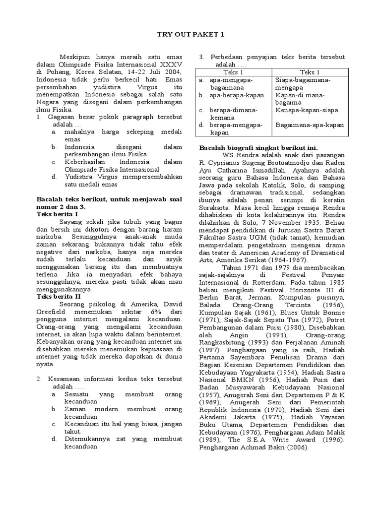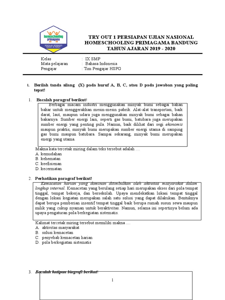 Try Out Paket 1 - Bahasa Indonesia Smp