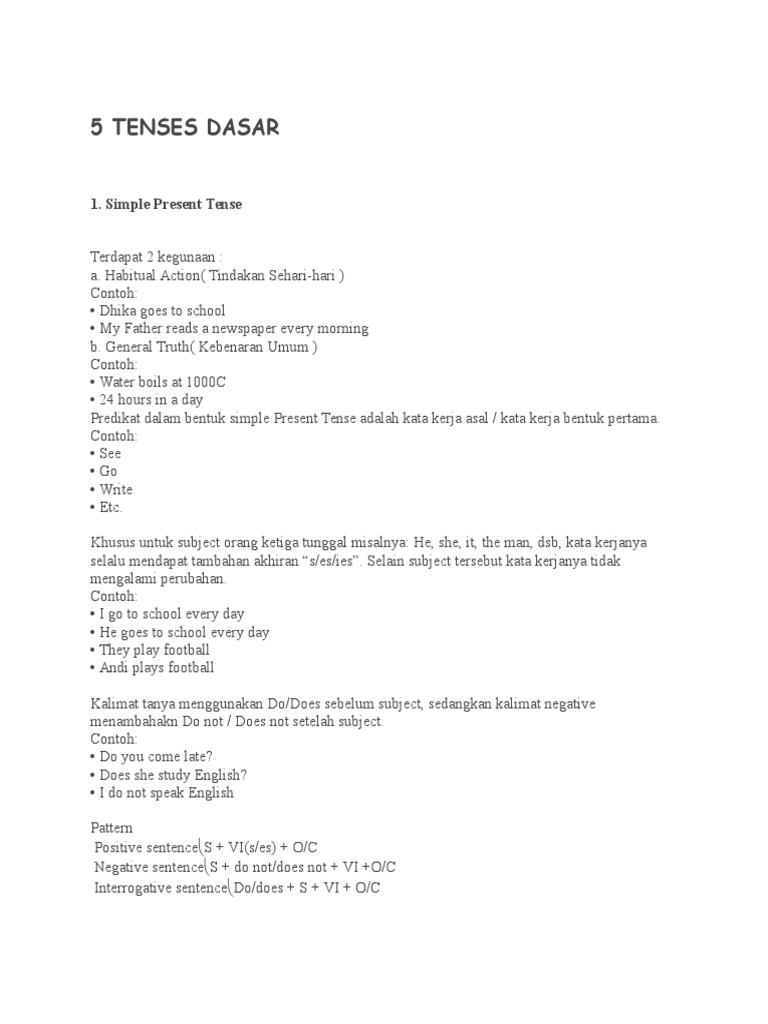 DOC) Contoh tenses | dikka putra - Academia.edu