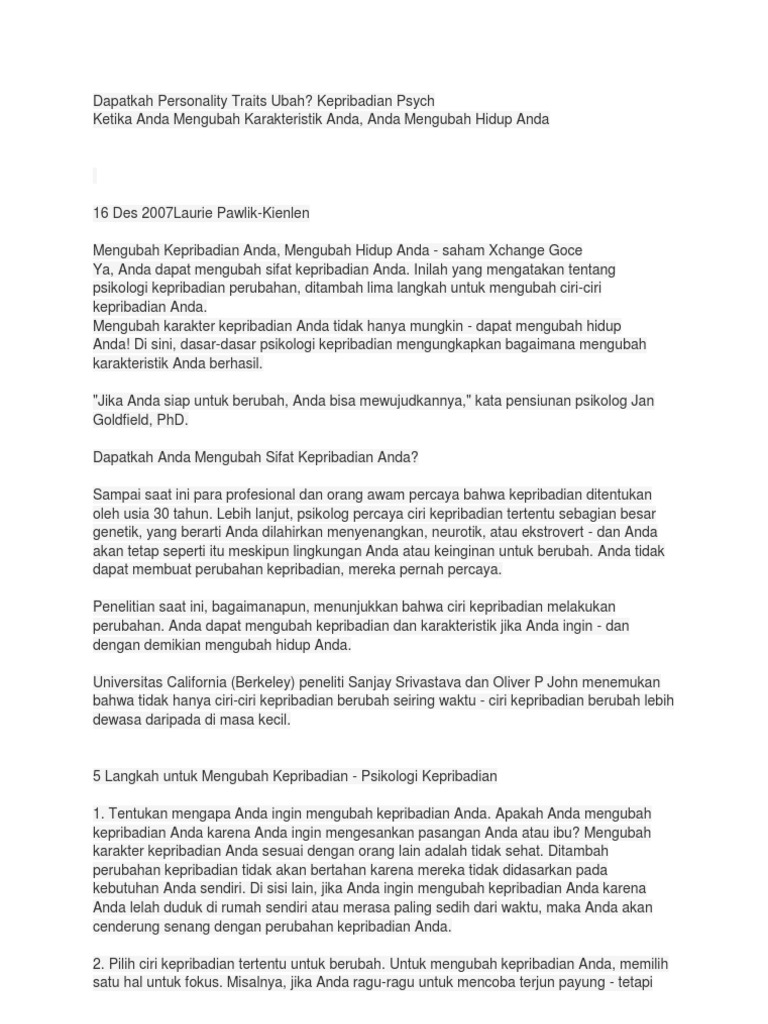 Studi : Ternyata Kepribadian Manusia Dapat Diubah - Lifestyle …