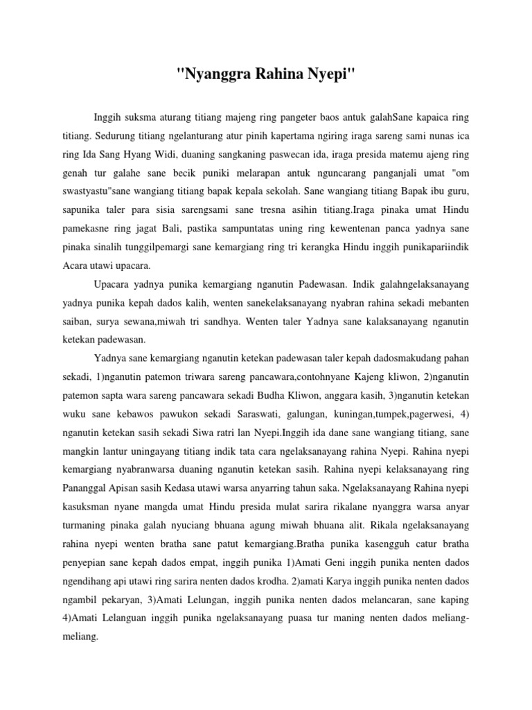 Pidato Bahasa Bali Nyepi | Kumpulan Kata
