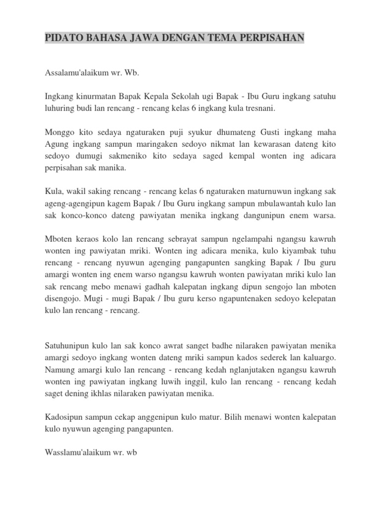 Search Pidato Perpisahan SD Bahasa Jawa - SlideUs.Org