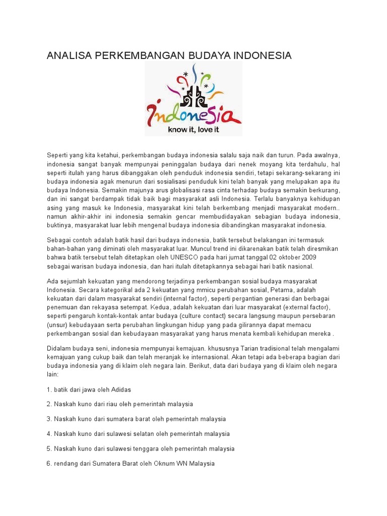 Analisa Perkembangan Budaya Indonesia