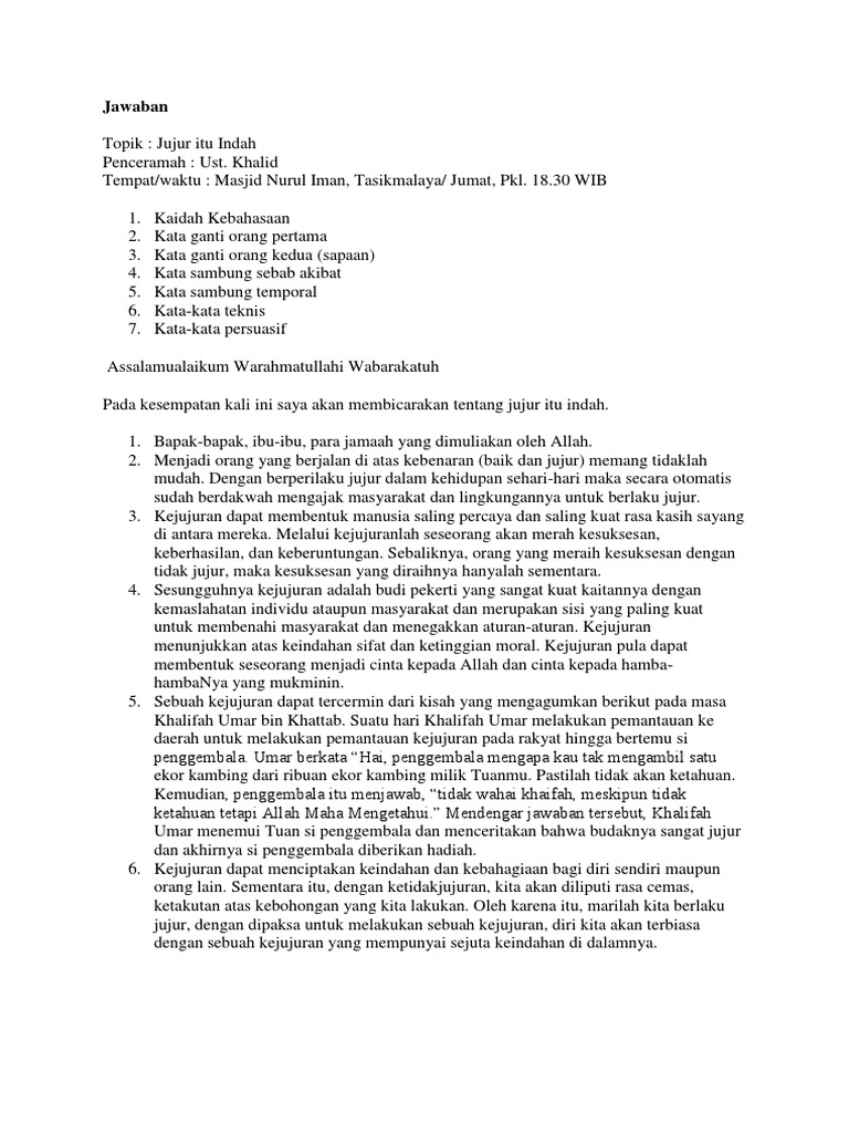 Contoh Pidato Agama Tentang Kejujuran | Contoh Soal Dan Materi …