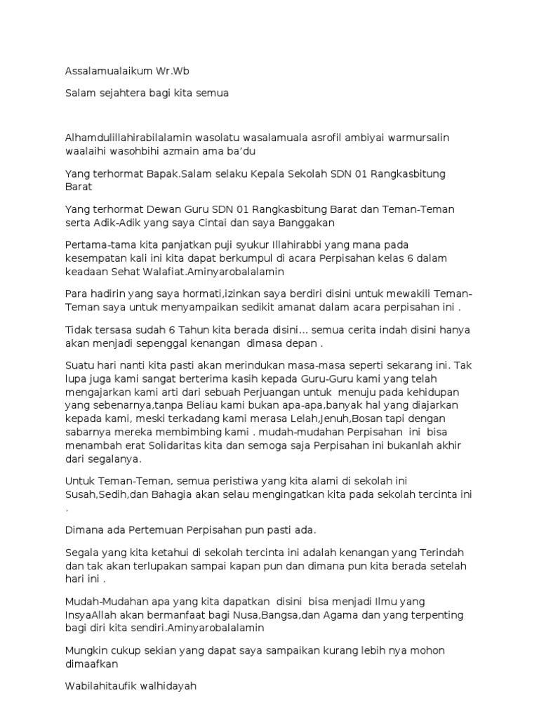 PDF) CONTOH PIDATO 51 Pidato Perpisahan SD | Farid Ramlan - Academia.edu