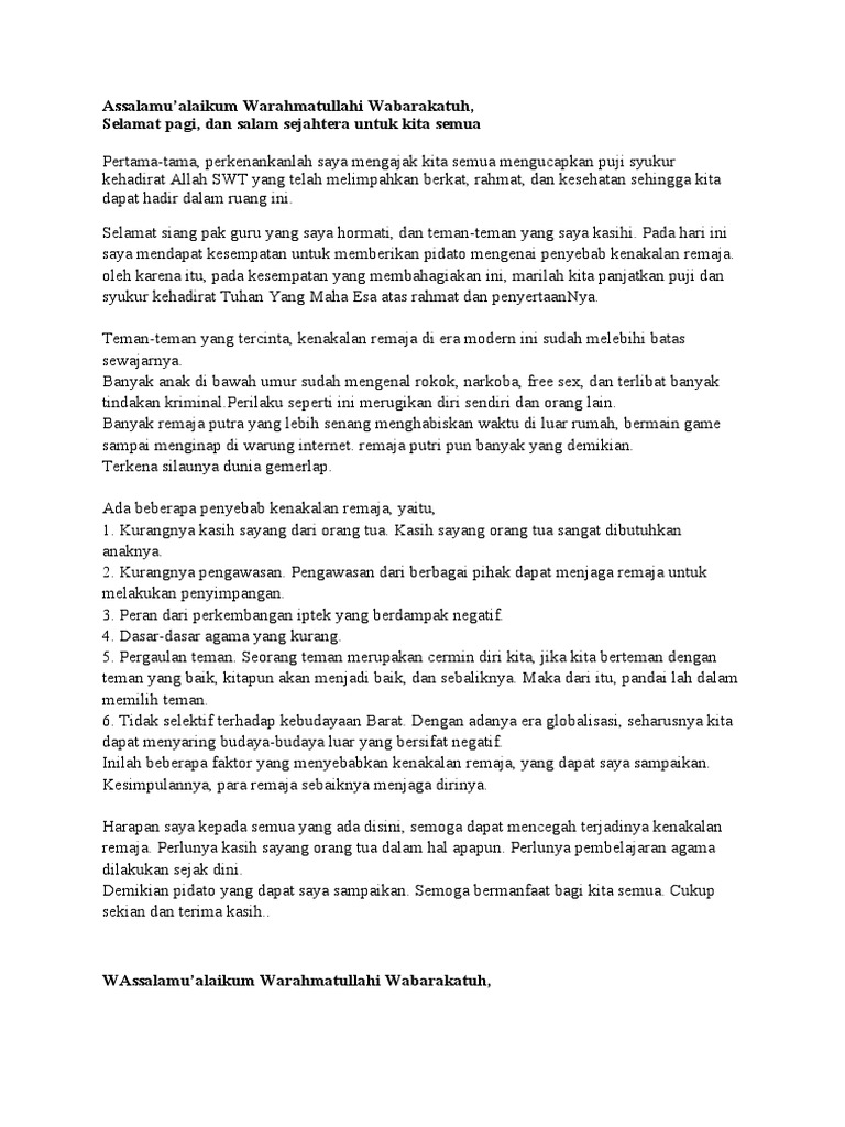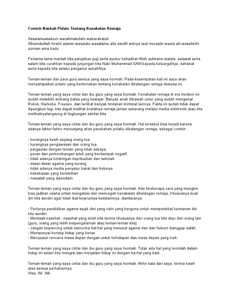 DOC) Contoh Pidato Singkat Tentang Kenakalan Remaja | Hadi Tomi - Academia.edu