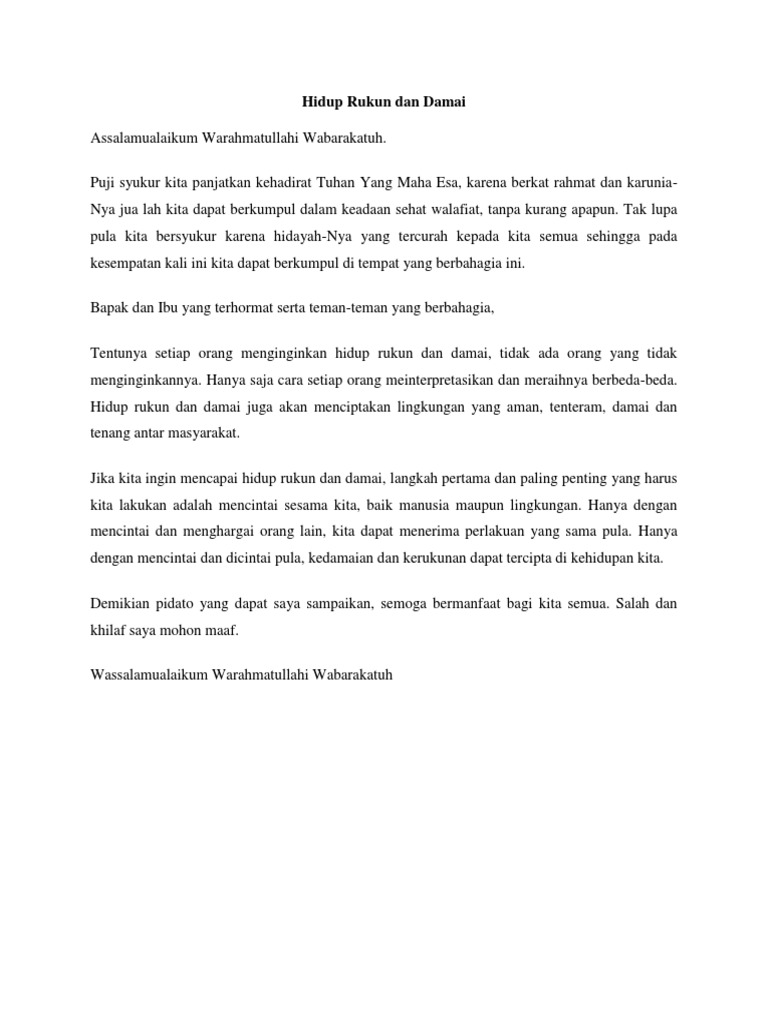 Contoh Teks Pidato Tentang Hidup Rukun Dan Damai – kebaya