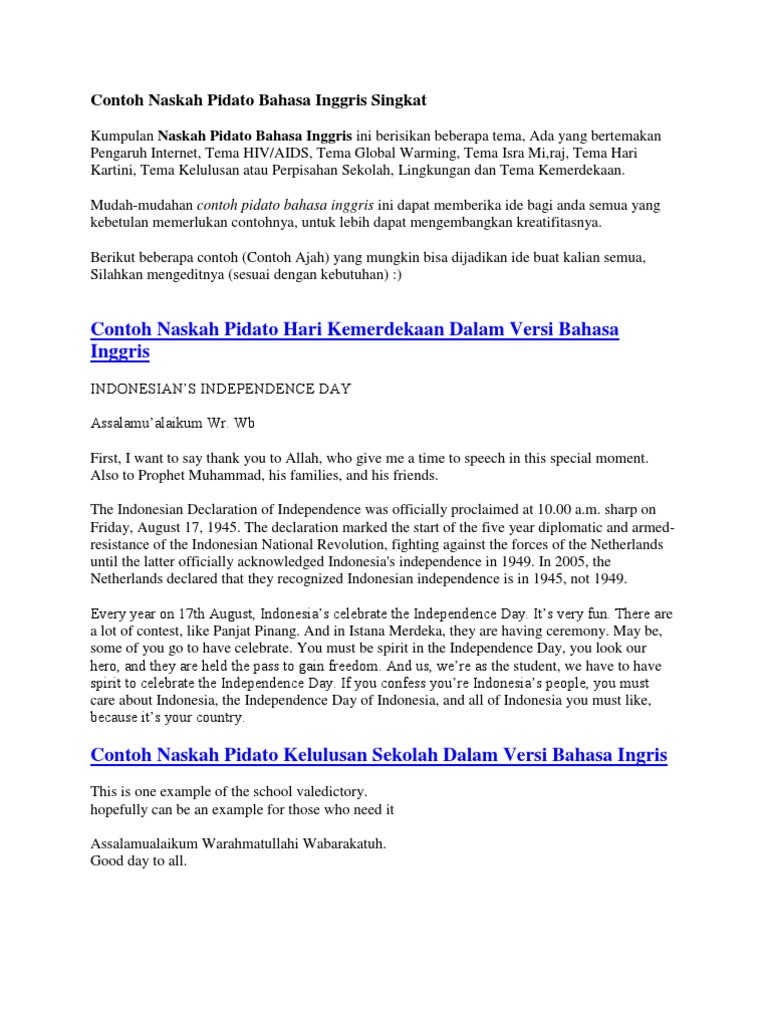 Contoh Naskah Pidato Bahasa Inggris Singkat | Indonesian Language | Internet