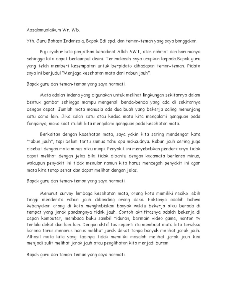 CONTOH PIDATO MENJAGA KESEHATAN MATA