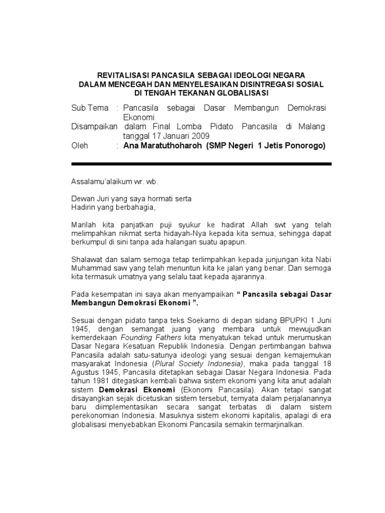 DOC) Pidato Hari Kesaktian Pancasila | marjen sihaloho - Academia.edu