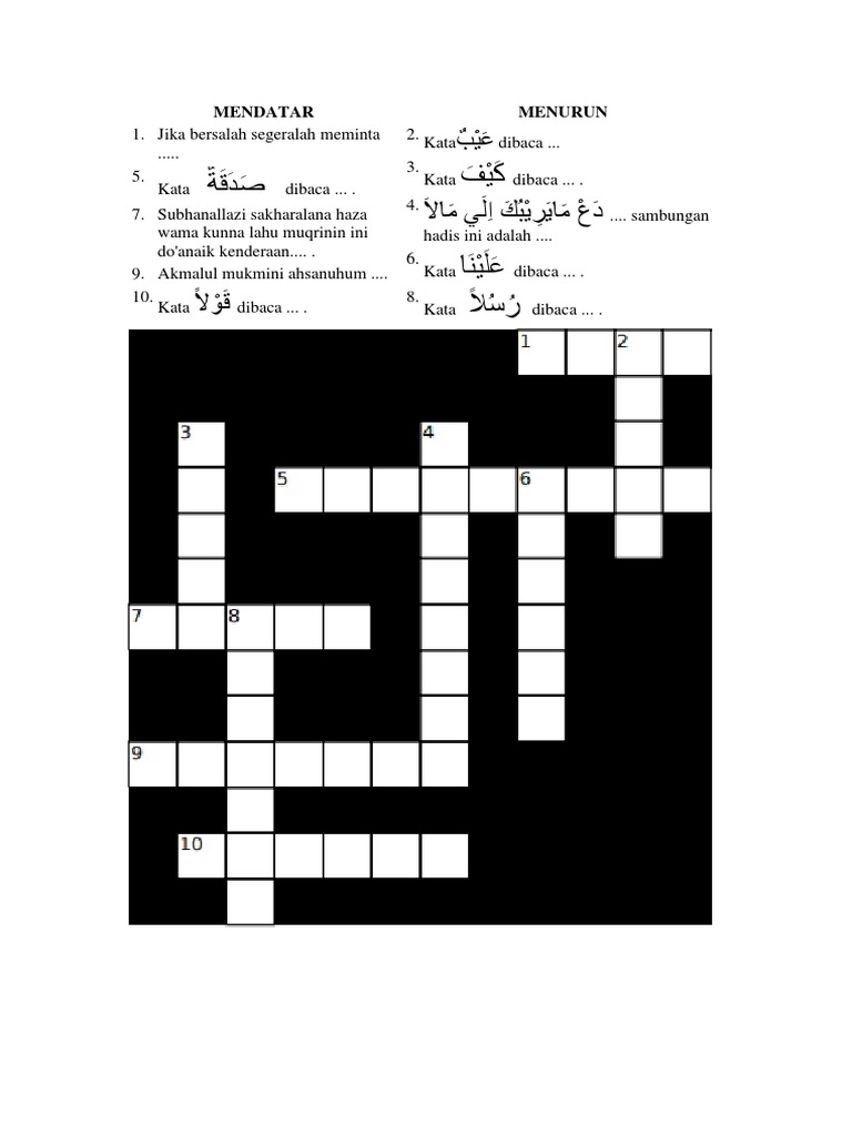 Teka Teki Silang Agama Islam Beserta Jawabannya
