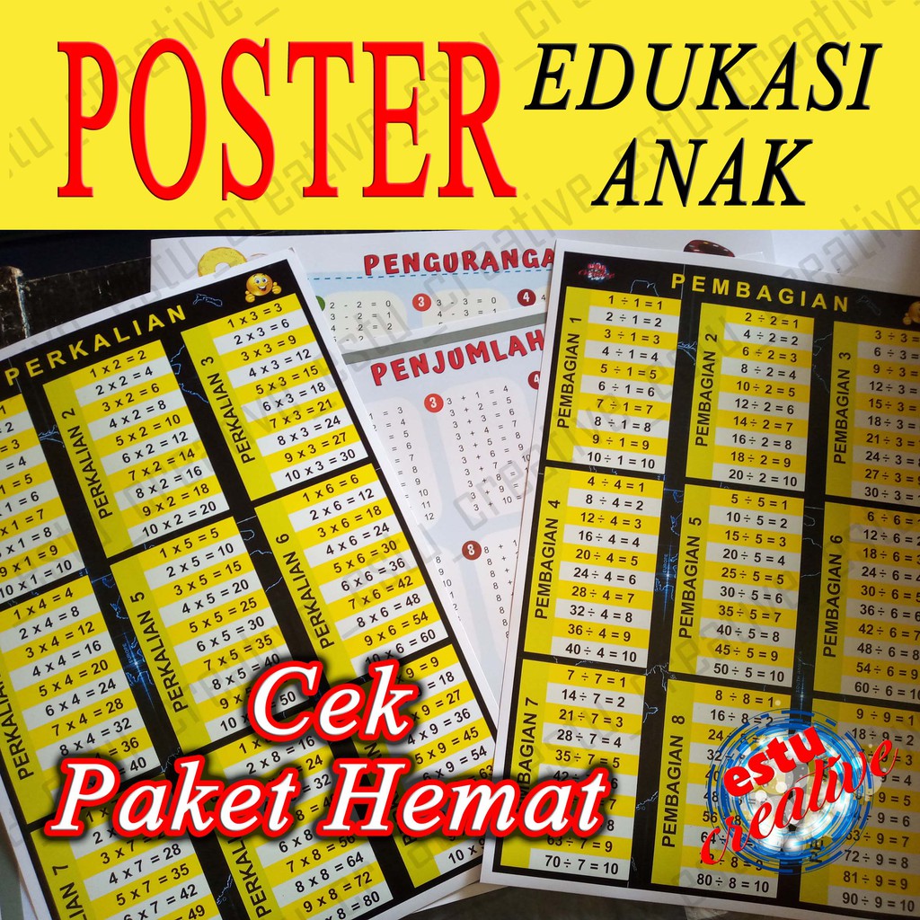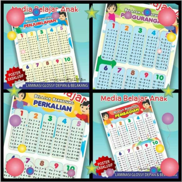 Poster Perkalian/Poster Pembagian/Poster Pertambahan/Poster Pengurangan | Shopee Indonesia