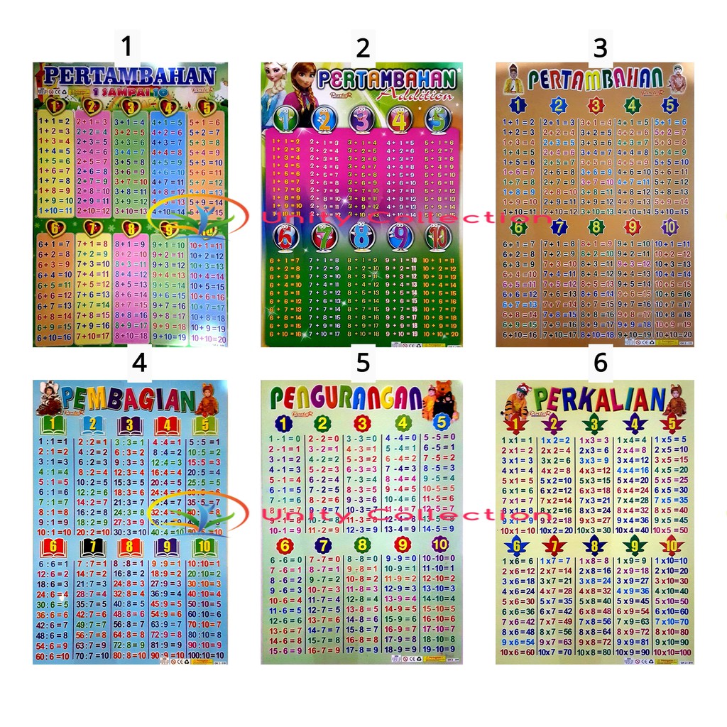 5 PCS POSTER BELAJAR PERKALIAN PERTAMBAHAN UNTUK ANAK BELAJAR | Lazada Indonesia