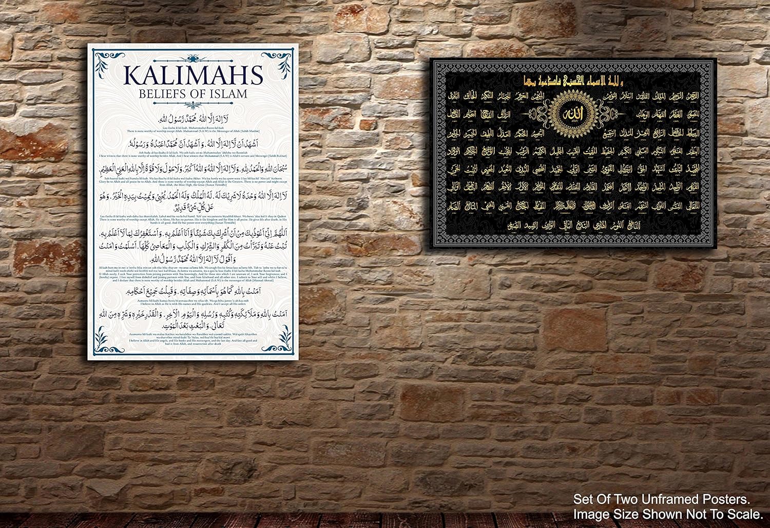 Tamatina Set of 2 Islamic Poster - Kalimahs - Belief of Islam - 99 …