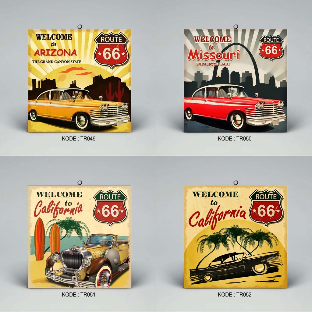 vintage poster mobil welcome to california - walldecor 20x20cm | Shopee Indonesia