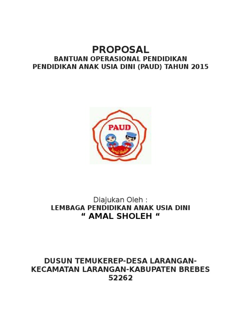 PROPOSAL USULAN PERMOHONAN PENGAJUAN BANTUAN OPERASIONAL PAUD TAHUN PDF Free Download