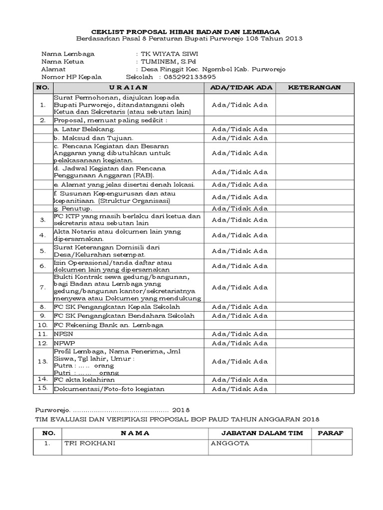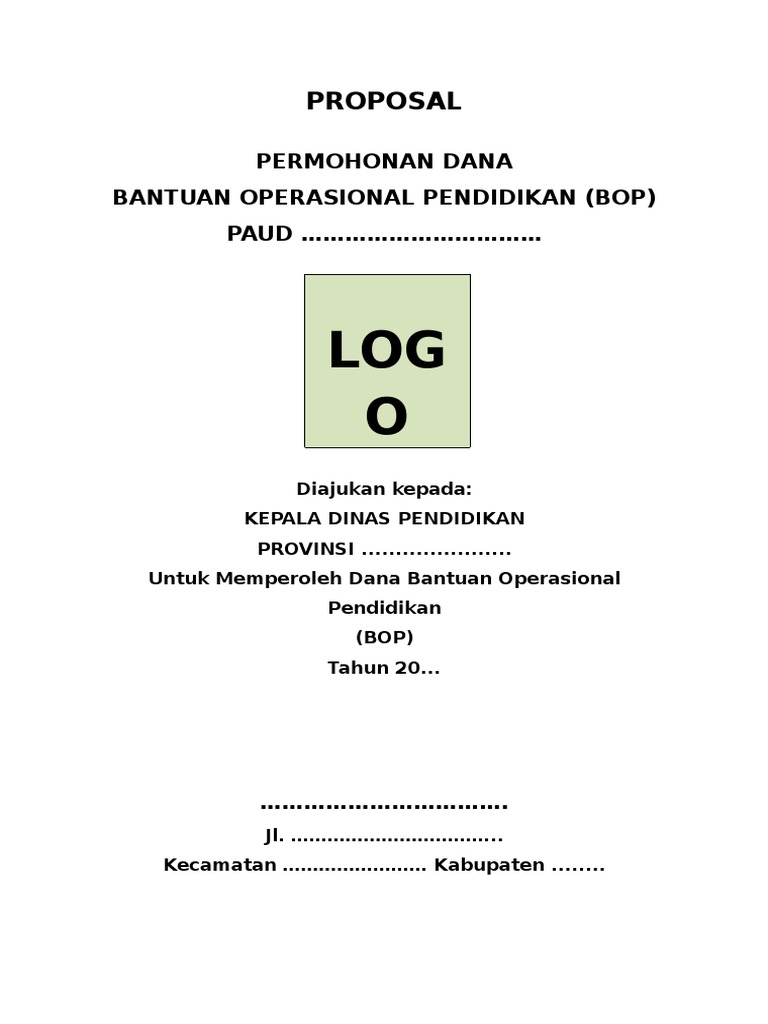 DOC) Proposal Pengajuan Dana BOP PAUD | Mubasyir Nh - Academia.edu