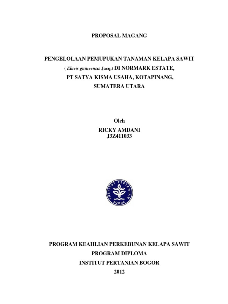 DOC) contoh proposal usul magang d3 perkebunan | harianto agusman - Academia.edu