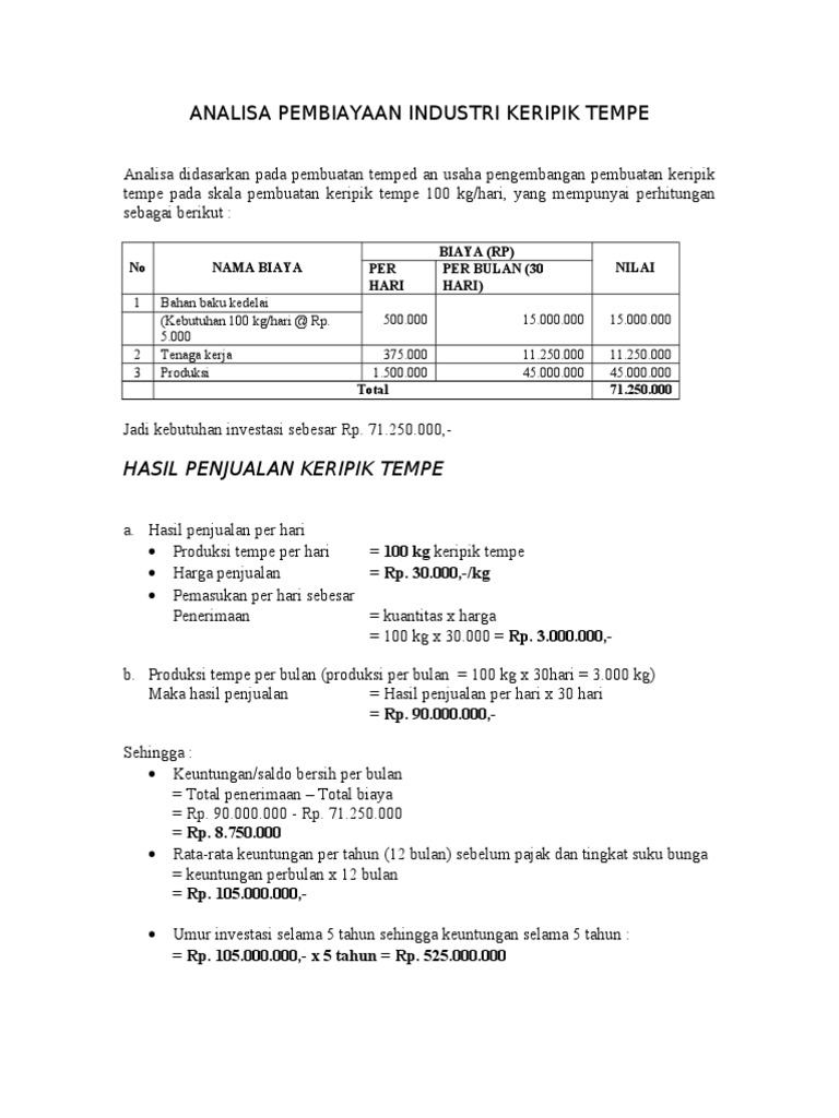 Analisa Pembiayaan Industri Keripik Tempe