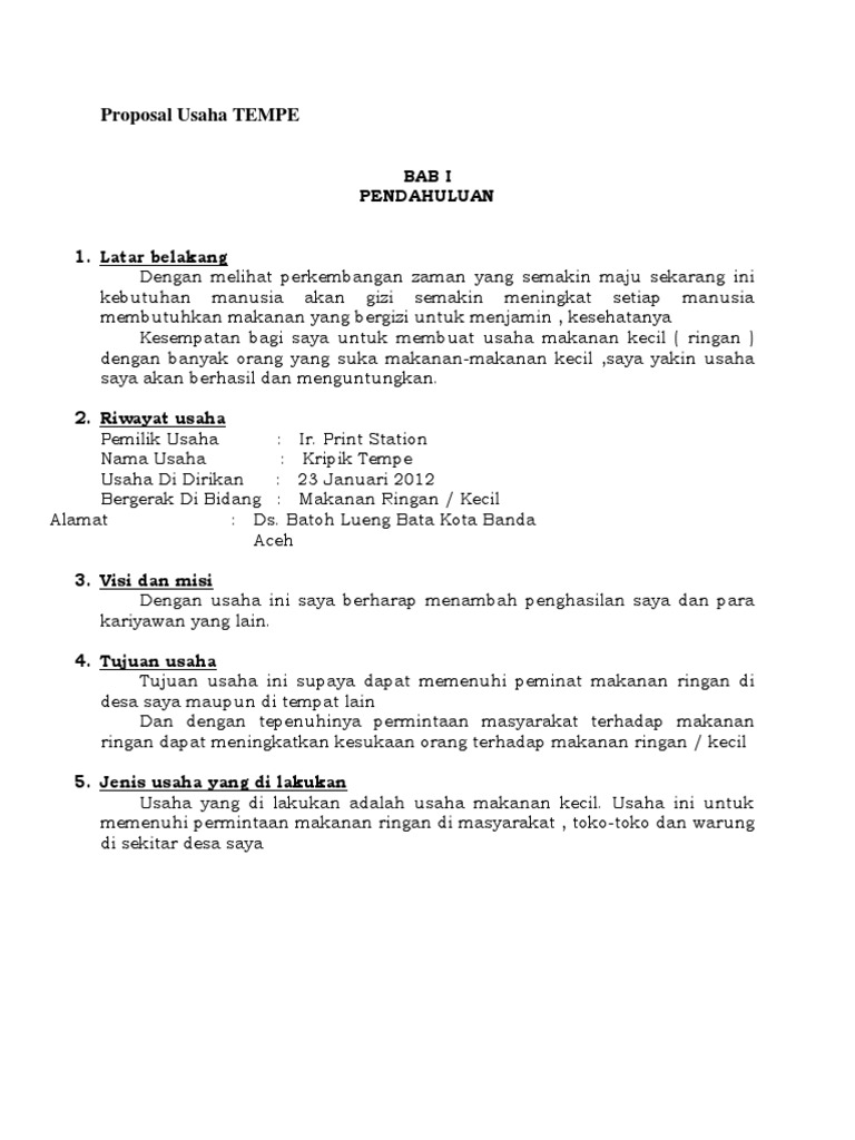 DOC) proposal pengembangan kripik tempe | Putra Putra - Academia.edu