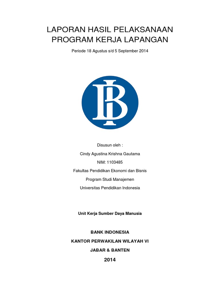 DOC) Laporan Akhrir Job Training KPw Bank Indonesia Provinsi Sumatra Barat | ref ka - Academia.edu
