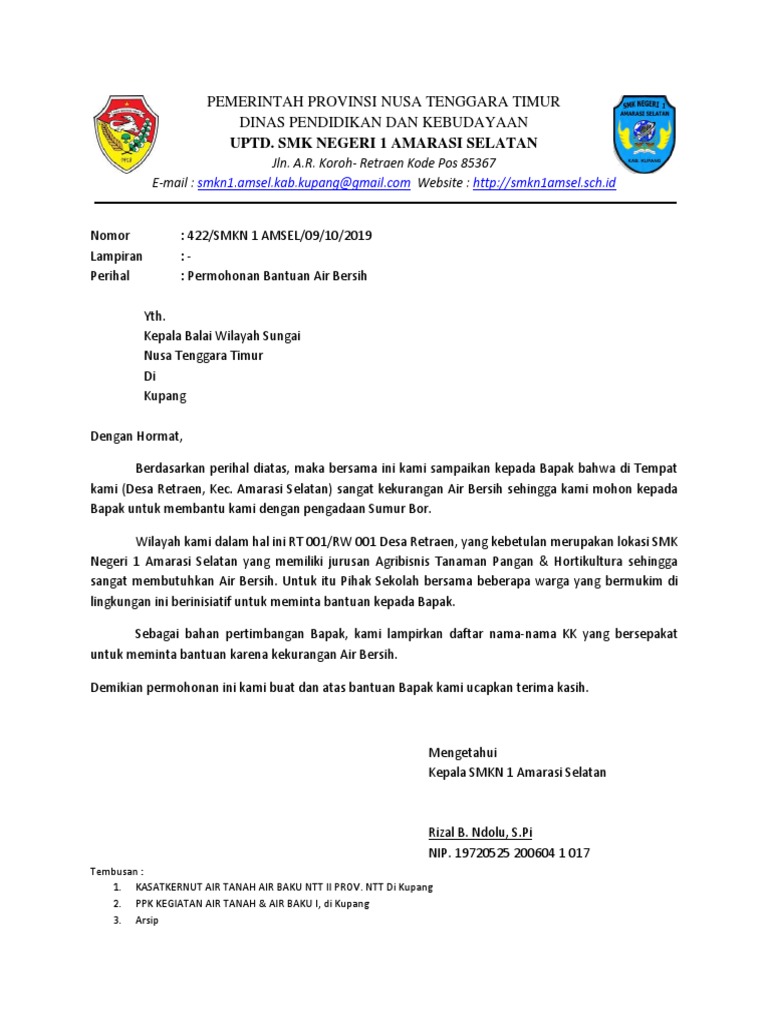 Contoh Surat Permohonan Bantuan Sumur Bor dari Sekolah