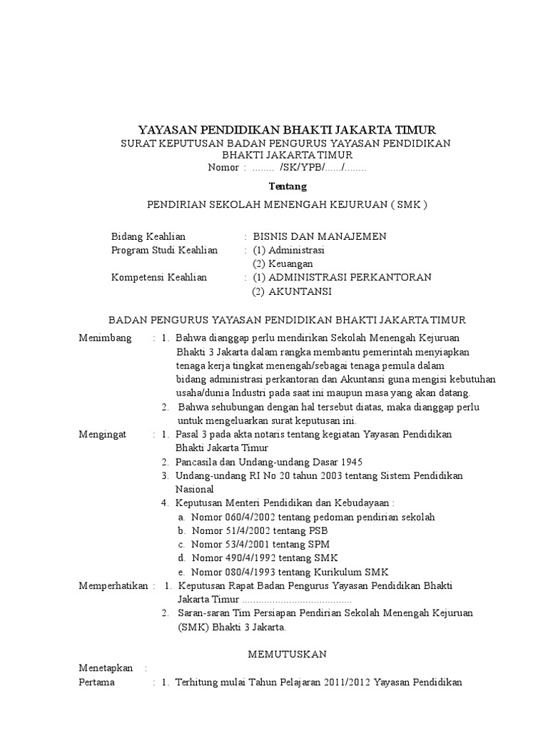 Contoh Sk Pendirian Sekolah - Guru Ilmu Sosial