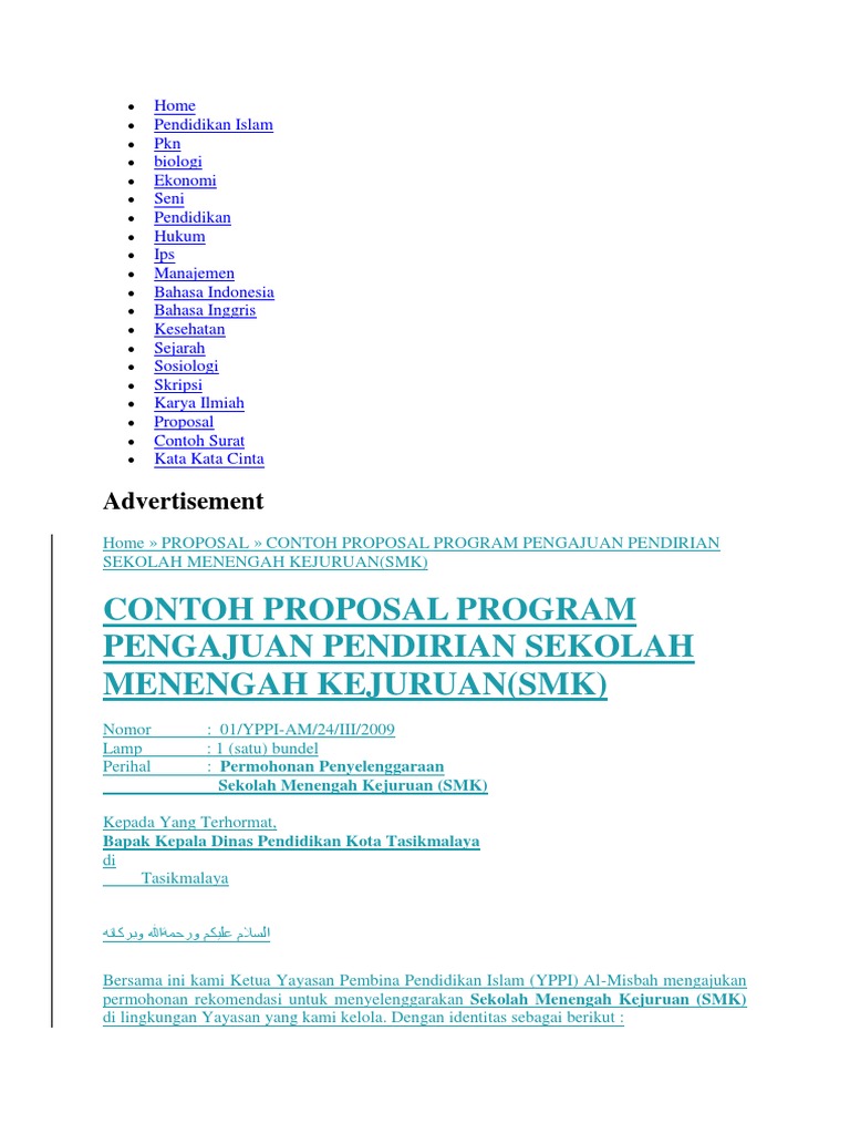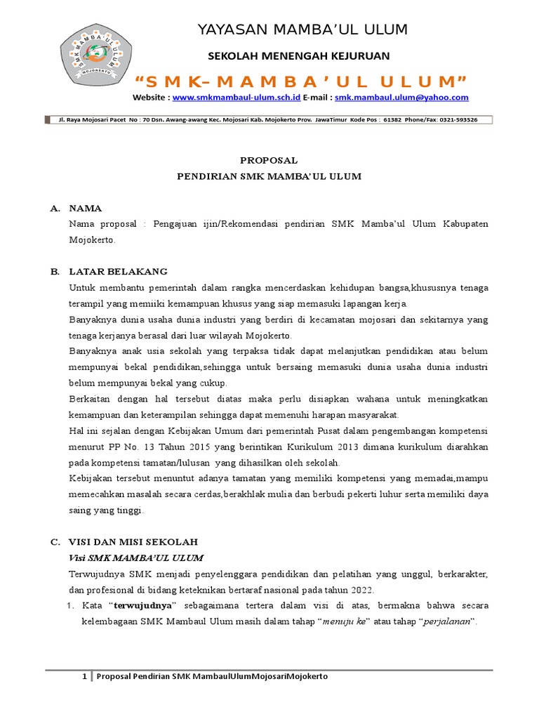 Contoh Proposal Pendirian Sekolah Smk Baru Pdf - Rismax