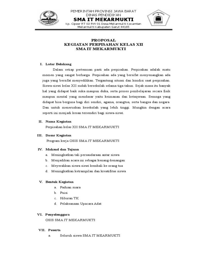 Contoh Proposal Perpisahan Sekolah - Rismax