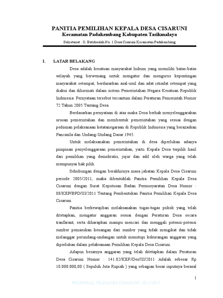 Proposal Pemilihan Kepala Desa Cisaruni Periode 2011 - [DOC Document]