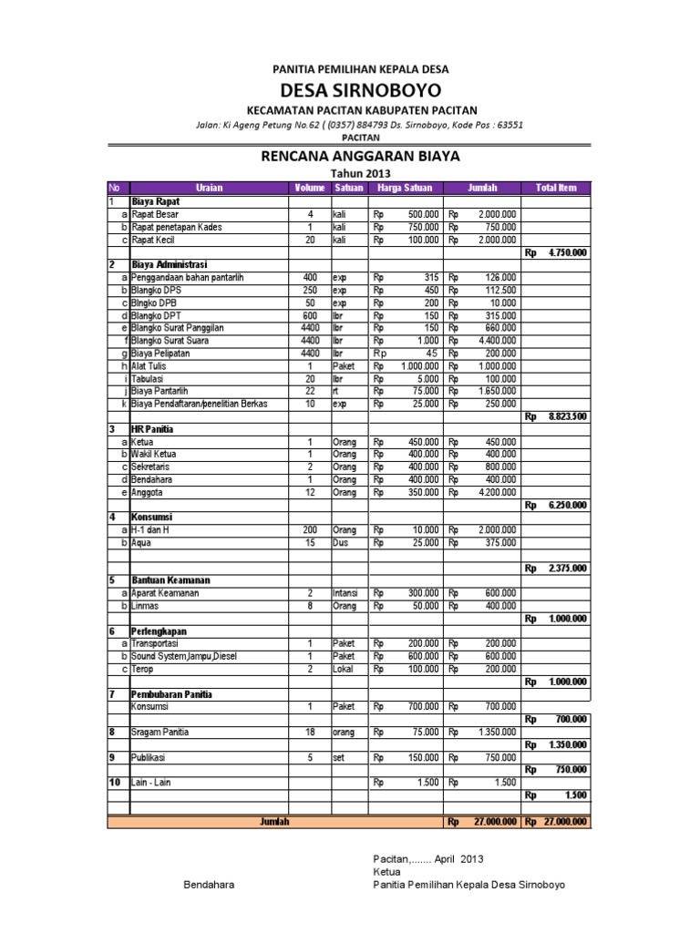Contoh Rab Pilkades (Pemilihan Kepala Desa) Format Excel - pembiayaan.id