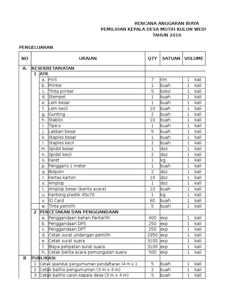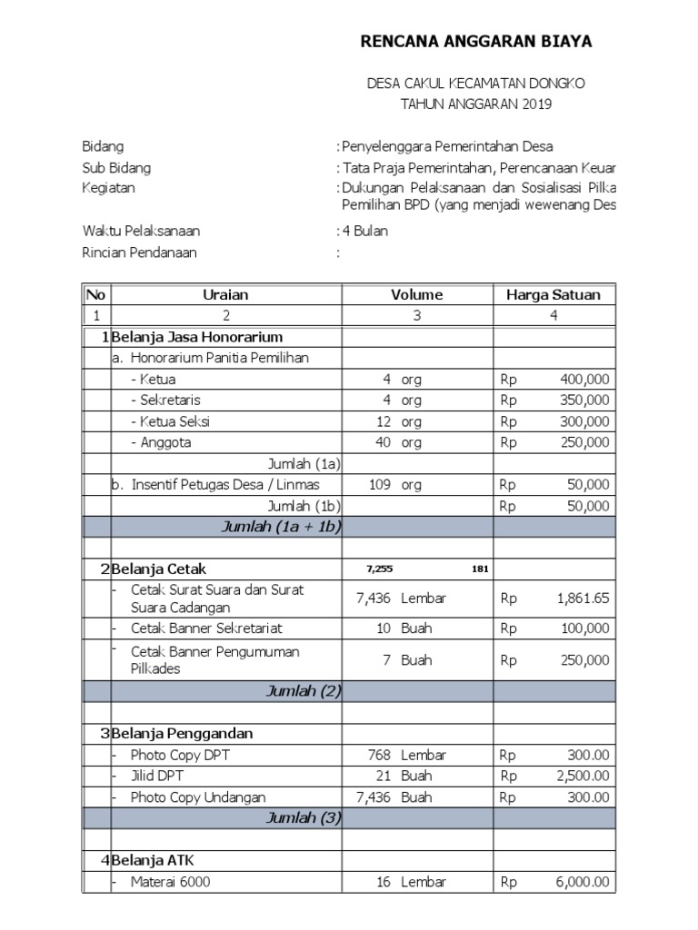 Contoh RAB Pilkades | FORMAT ADMINISTRASI DESA