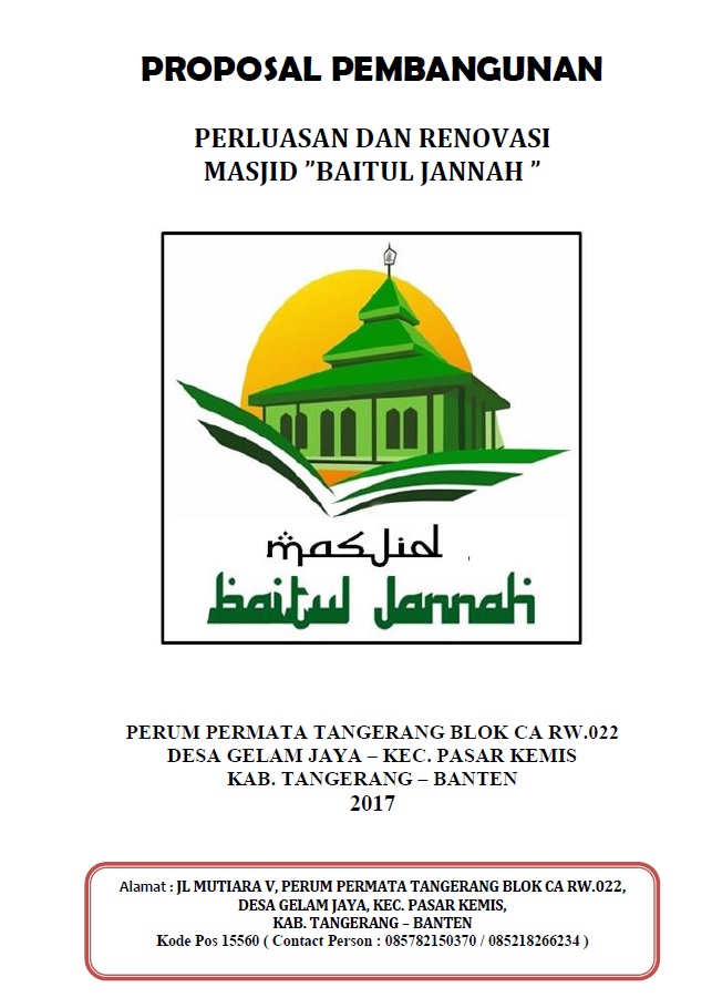 MASJID “BAITUL JANNAH” RW.022 PERUM PERMATA TANGERANG: Proposal Pembangunan Perluasan & Renovasi Masjid Baitul Jannah