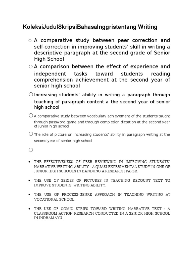 Koleksi Judul Skripsi Bahasa Inggris Tentang Writing | English Language | Students