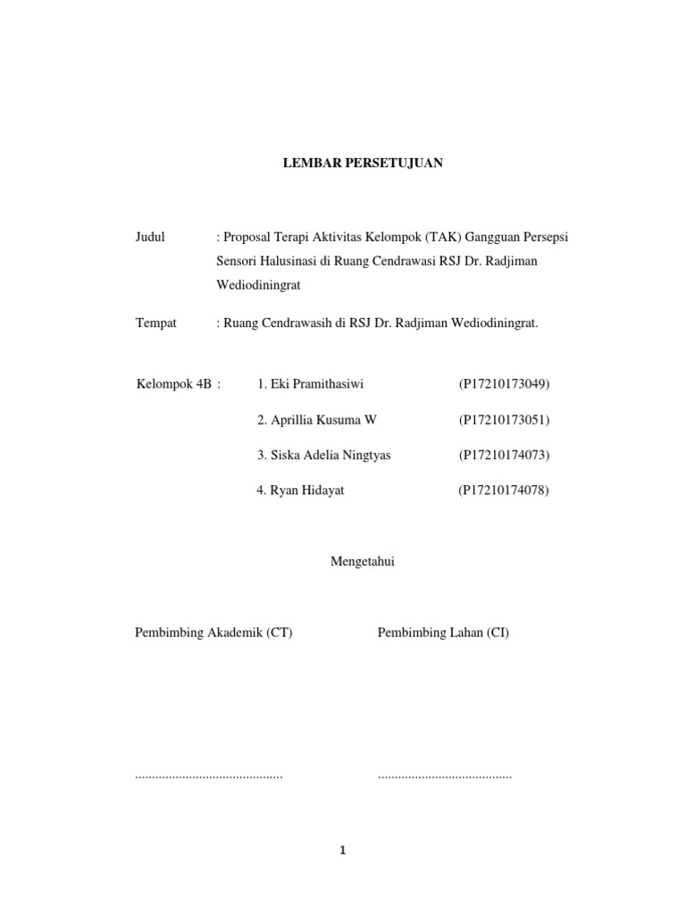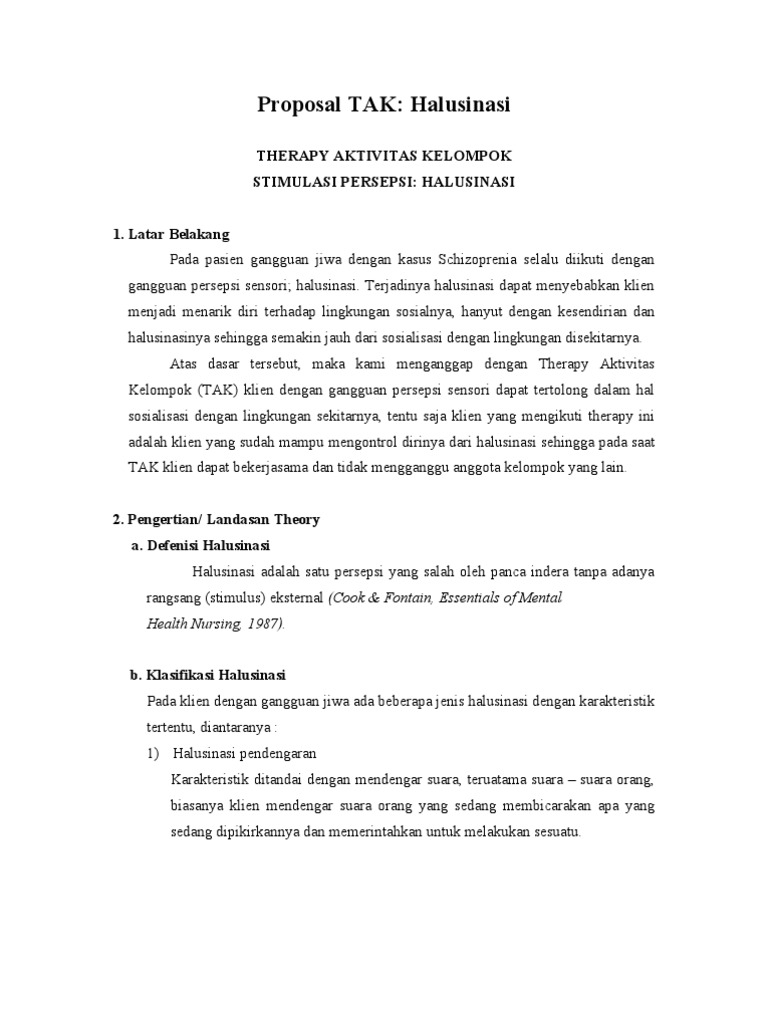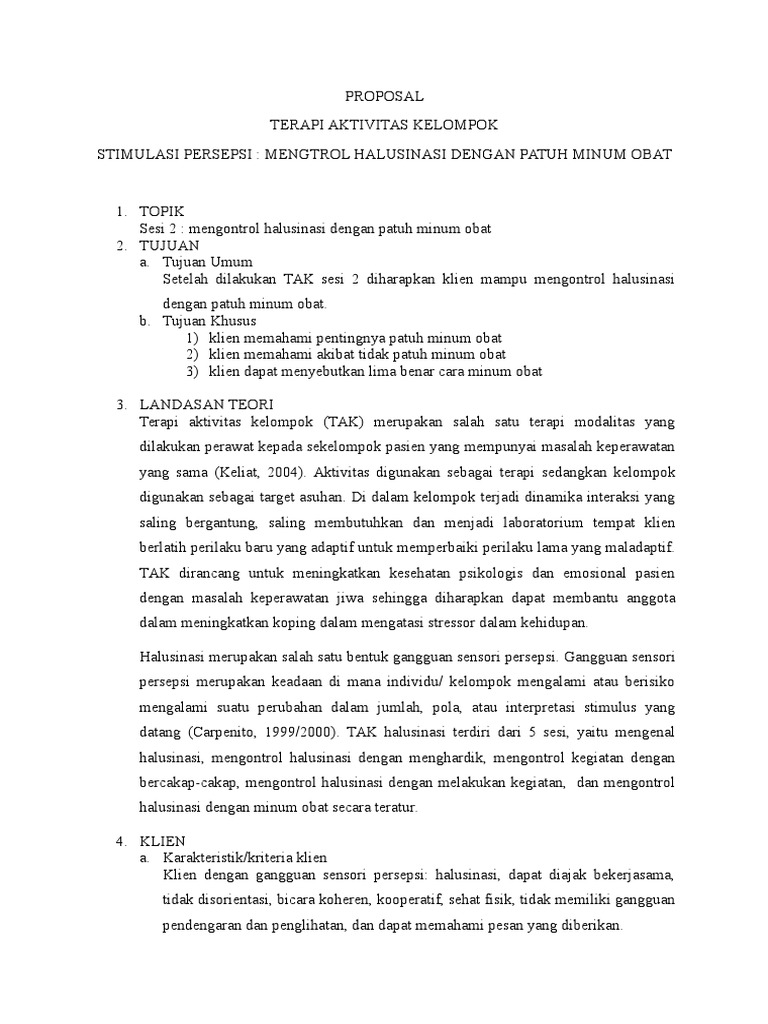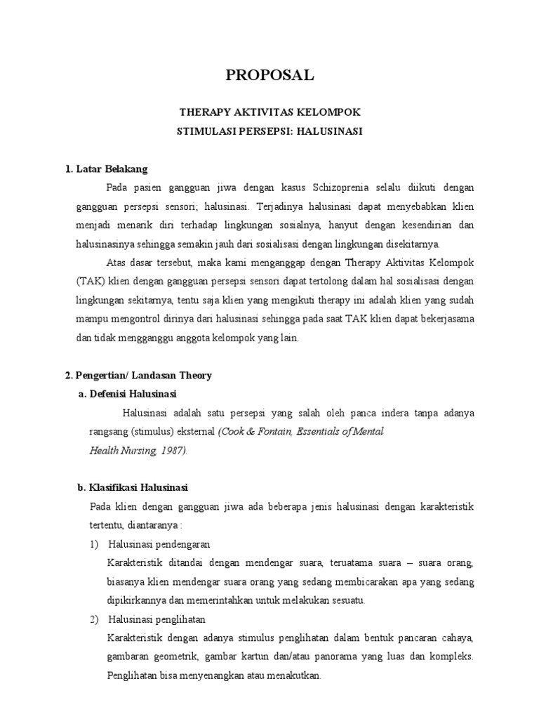 DOC) PROPOSAL TERAPI AKTIVITAS KELOMPOK STIMULASI PERSEPSI HALUSINASI | Nurainah Fajriati Sagita Asri - Academia.edu