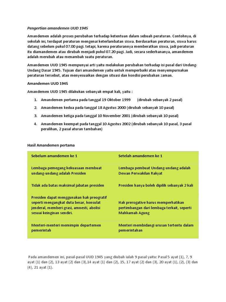 PENDAHULUAN PROSES PERUBAHAN UUD NEGARA REPUBLIK INDONESIA TAHUN 1945 - PDF Free Download