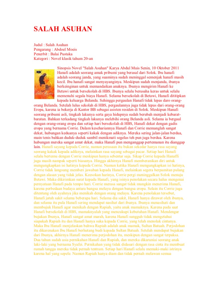 DOC) Analisis Unsur Intrinsik dan Ekstrinsik Novel Salah Asuhan (Abdoel Moeis | dini a - Academia.edu
